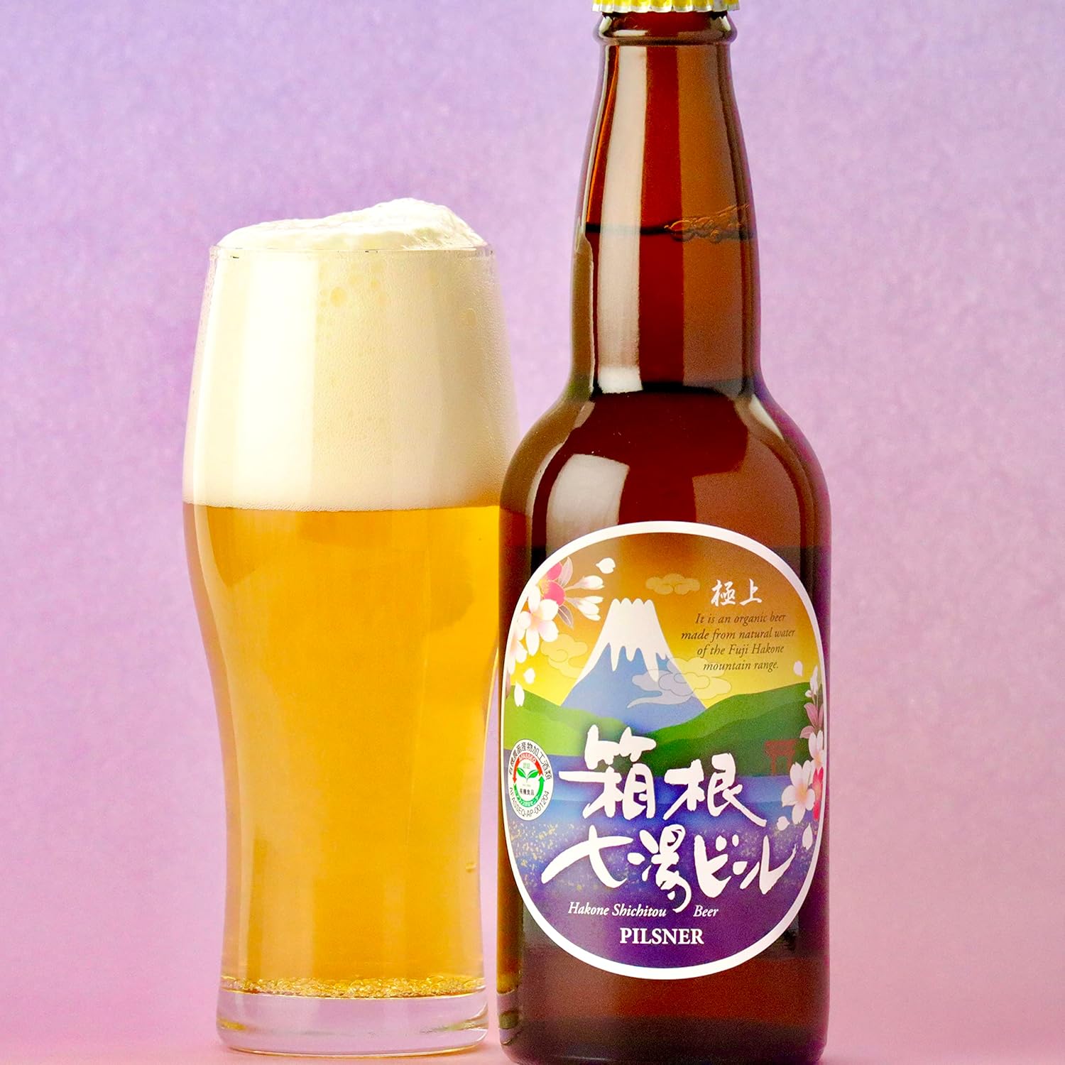有機麦芽・富士箱根山系の天然水使用、チェコ共和国の伝統的なピルスナーを再現しました。麦芽のほのかな甘みとバランスが取れた芳醇な味わいが特長です。このビールはJAS有機登録認定機関であるアファス認証センターが、原料から出荷までの全工程において有機的に生産された事を保証しています。