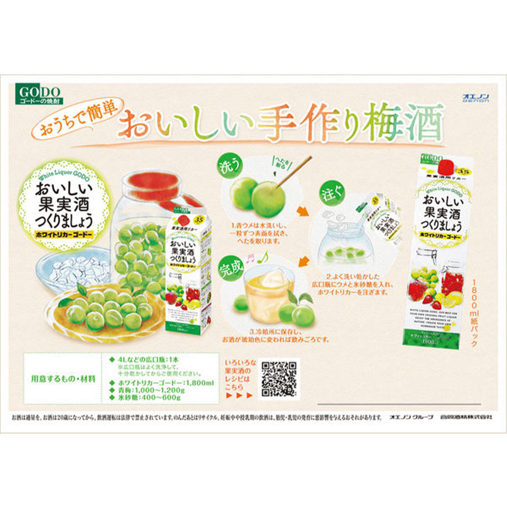 果実酒づくりに最適な35%のホワイトリカーです。ここ最近の傾向として「LOHAS]「梅酒ブーム」「内食傾向」等も手伝って、家庭での梅酒作りが注目されていますが、無味無臭の純粋なホワイトリカーは、素材のおいしさを活かした果実酒作りをお楽しみいただけます。